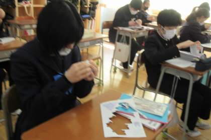 「正多面体について考えよう」という課題で、実際に正多面体を組み立てました。みんな集中して取り組んでいました。