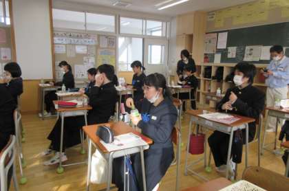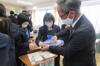 中学生ものづくり教育事業講演会を行いました。軟水と硬水の飲み比べをしたり、クイズをしたりして楽しく学べました。将来の進路を考えるきっかけになりました。