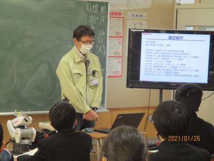 本日6限目に、(株)不二越さんより講師の方が来校され働くことについての講演会をしてくださいました。ロボットのことについて深くお話しされ、みんな真剣に聞いていました。貴重な体験をありがとうございました。