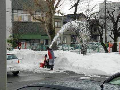 雪がずいぶん溶けてきました。もう少し駐車場を広げようと除雪しています。ありがとうございます。