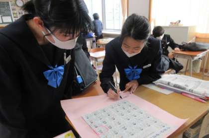 新聞を読んでいて、先輩の記事を見つけ喜んでいます。早速教室内に掲示しました。