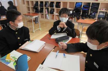 個人で考えを書いた後、班になって発表しました。友達の考えを聞いて新たな発見をした人も数多くいました。互いに自分の思いや考えを素直に伝えていて、すてきです。