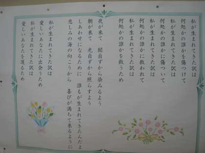 下の写真は、いずみ級前に掲示してある歌詞です。