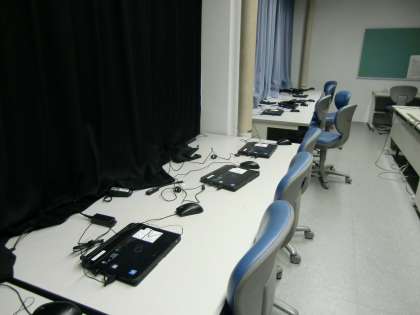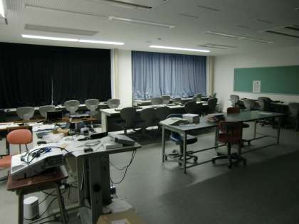 保健室前を進むと南館です。南館1階にはコンピュータ室があります。技術家庭科や総合的な学習の時間等の授業で利用します。