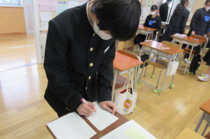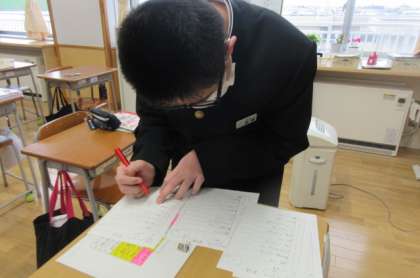 今日は英語の小テストです。学年委員会のメンバーが採点しています。