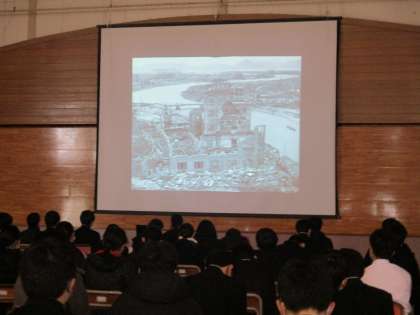 映像を見ながら、第二次世界大戦について学習しました。当時の悲惨な様子を目の当たりにし、大きな衝撃を受けました。今後は、太平洋戦争、広島の原爆投下、富山大空襲と学習を進めていきます。