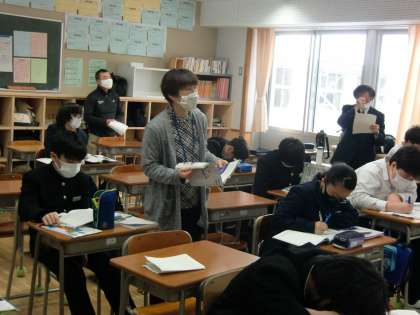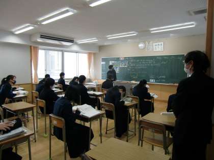 今日は、教育推進員会でした。推進員の方が、授業を参観されました。写真は、2年生の英語です。発音の練習や単語の意味を確認しています。