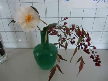 茶道部で飾っているお花が職員室前にあります。とても美しいですね!!