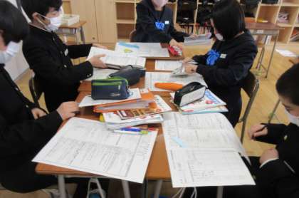 17日〜19日に実施する学年末考査の範囲を発表しました。ふせんや色鉛筆を使って工夫しながらワークの範囲を確認しました。計画実践表に記入したのでご自宅で励ましの言葉をかけていただければ幸いです。
