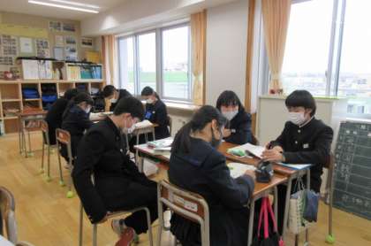 落語について学習しました。落語を聴いた後、班ごとにおもしろさについて話し合いました。