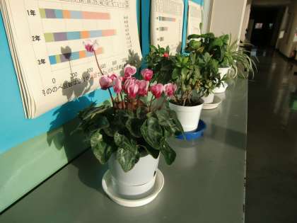 校舎内の鉢植えもたくさんの花を咲かせています。