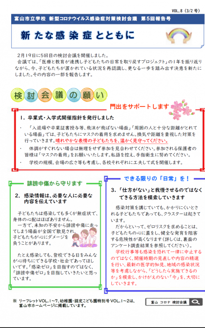 新型コロナウイルス感染症対策検討会議VOL.8が届きました。本日、全校生徒に配付します野でご覧ください。