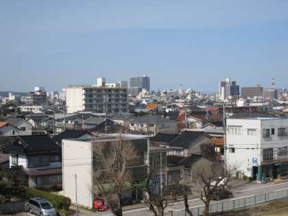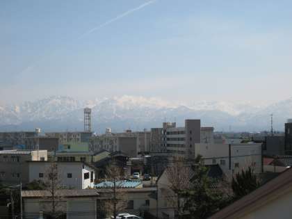 (写真上:校舎東側から立山連峰、写真下:校舎西側から見た風景)