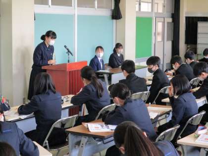 高校生活や行事、取得できる資格について教えていただきました。また、受験に向けての学習法、高校に入学して変わったことなど、先輩方の経験を踏まえた話を聞くことができました。