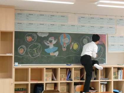 黒板アートの制作が進んでいます。まもなく完成です。お楽しみに!!