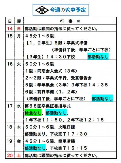 今週の予定です。