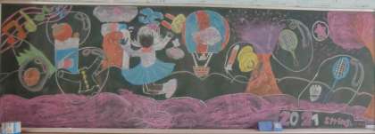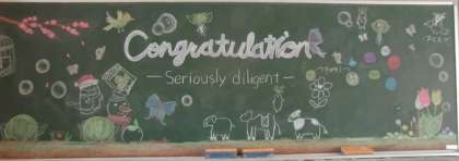 黒板アートが完成しました。あと少し手直しをする作品もあるようです。