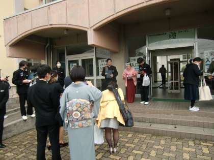 歓送、歓送後の様子です。記念に写真を撮っています。