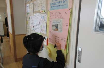 生徒が選んだ記事に同じ学級の生徒がコメントを書いています。