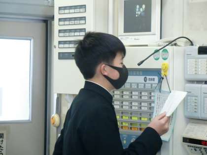 図書館司書の先生が異動されることになりました。給食時の放送で、離任式を行いました。校長先生からの紹介の後、司書の先生から言葉をいただきました。最後に図書委員長からお礼の言葉がありました。