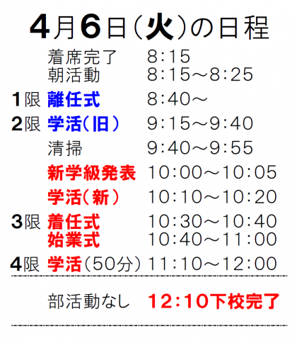 4月6日(火)新学期がスタートします。新たな気持ちで元気に登校しましょう。