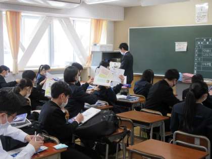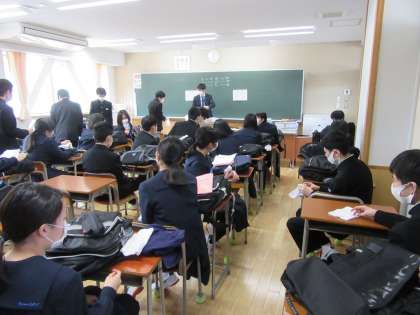 始業式終了後、新クラスに分かれて学活を行いました。提出物を集めたり、新しい教科書が配られたりしました。嬉しそうに教科書を開いて見ている様子からは、最上級生となる新たな年度への期待が感じられました。