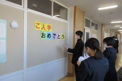 明日の入学式に向けて、飾り付けをしています。