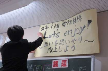 皆で話し合って決めた学級目標を掲示しました。1年間、がんばろう!