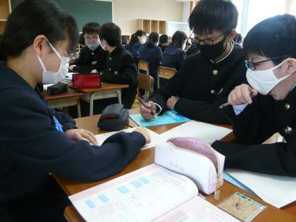 グループで話し合いながら、いろいろな考え方を学びました。発表も意欲的に行いました。