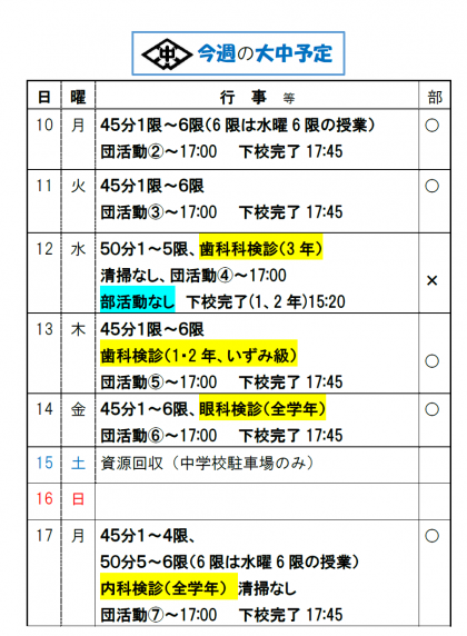 今週の予定です。