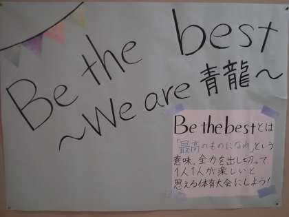 先日、体育大会実行委員のメンバーが、1F廊下に各団のスローガンを掲示してくれました。5/29(土)の体育大会に向けて、雰囲気が高まっています。