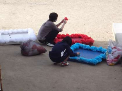 また、得点板をきれいに飾る姿も見られました。みんなで体育大会を創り上げようとしています。