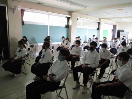 本日視聴覚室で、2年生は4限目に、3年生は6限目に、体育大会のスナップ写真や動画をまとめたDVDを鑑賞しました。(1年生は昨日、途中まで鑑賞しました。)