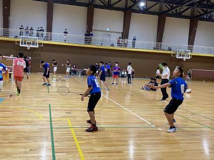 6/19(土)大会2日目です。バドミントン会場では、シングルス、ダブルスの個人戦の3回戦以降を行なっています。本校バドミントン部の生徒は、シングルスで2名、ダブルスで1組進出していました。善戦するも、シングルス1名、ダブルス1組は惜敗しましたが、シングルス1名は勝ち上がり、ベスト16に進出しました。