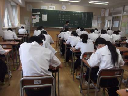 本校は、校舎の構造上とても風通しがよく、今日も爽やかな風が教室内を通り抜けています。今は、風の通り抜ける音と、鉛筆の走る音しか聞こえません。みんな、集中して取り組んでいます。