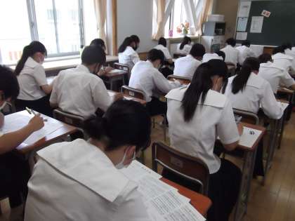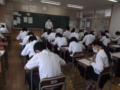1学期末考査も最終日となりました。湿度は少し高めですが、教室は風通しがいいので、快適にテストに取り組めているようです。