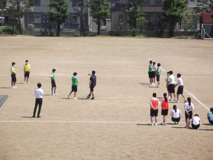 男女共修の、サッカーの授業です。パスを回してゴールにつなげる練習をしていました。