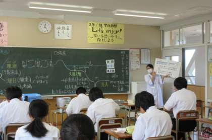 富山南給食センターから栄養士さんをお招きして、スポーツと食事をテーマにお話をしていただきました。クイズ形式のたいへんわかりやすいお話でした。