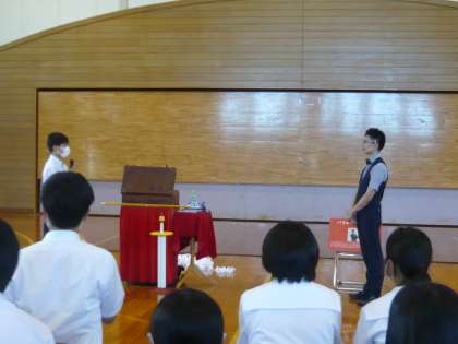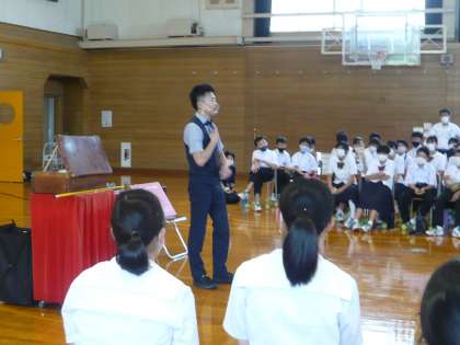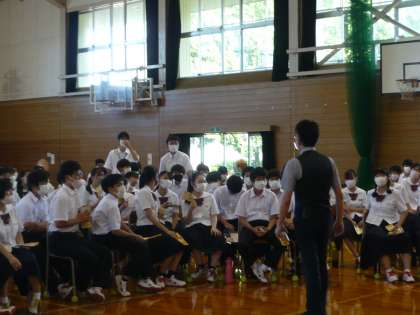 講師の清水さんの講話や、生徒の質問に答えていただいている時の様子です。生徒は、清水さんの話を食い入るように聞いています。
