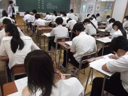 本日3年生は、1〜5限まで確認テストを実施しています。進路選択に向けての、具体的な取り組みの一つです。