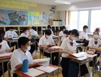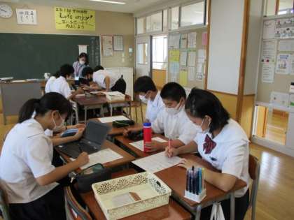 左:2−2 夏休みの課題を確認しています。夏休みも勉強頑張りたいですね!