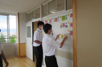 読書紹介のシートを貼っています。夏休みに友達がおすすめする本を読んでみよう!