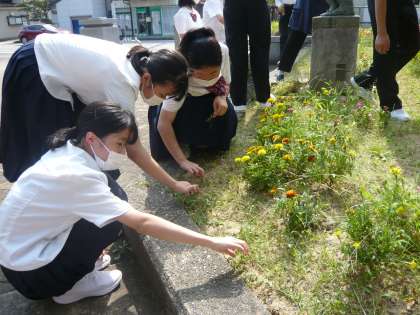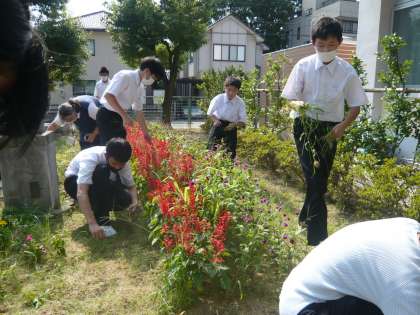 環境委員会とボランティアの生徒で花壇の草むしりをしました。たくさんの生徒が協力してくれたおかげで、あっという間にきれいになりました。皆さん、ありがとうござました。