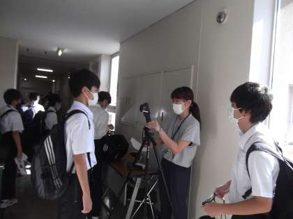 玄関では密を防ぐとともに、体温や健康のチェックをして、教室に向かいます。