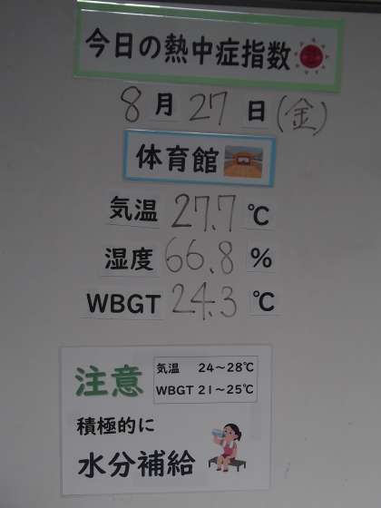 保健室前には、現在の熱中症指数等が表示されていました。