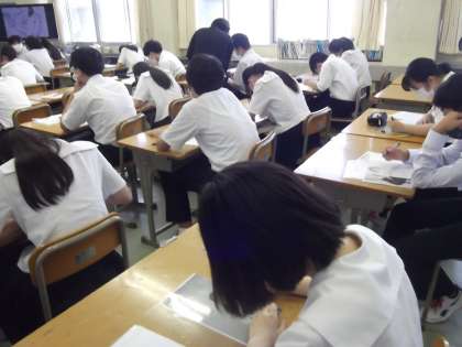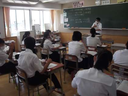 1次関数のグラフの特徴を学んでいます。自然と学び合いが始まります。