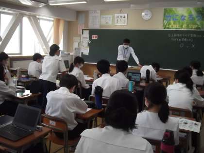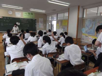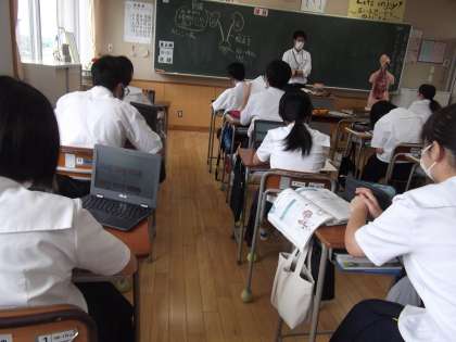 人間の体の、排出系について学んでいます。大川先生が、ご自身のお父さんの話を例に、楽しい授業を展開されていました。