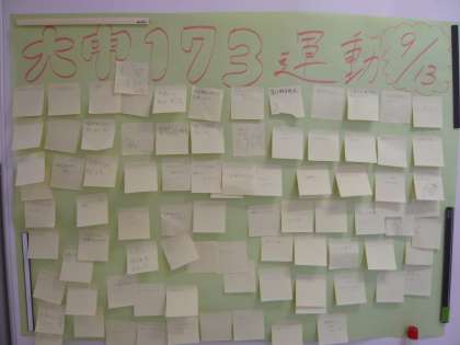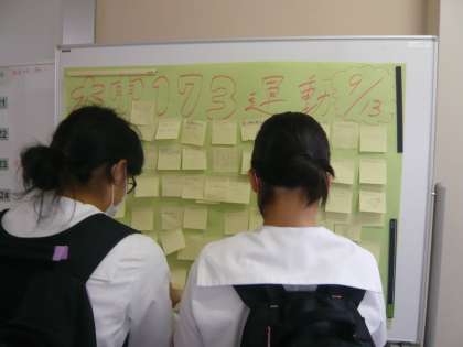 今日は「大中の日」です。生徒会の企画で「学校のために取り組んだこと」を付箋に記入し、生徒玄関に掲示しています。これからも、全校一丸となってよりよい学校を築いていきましょう。