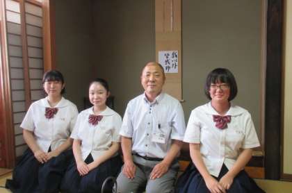 校長先生が「我以外皆我師(われ以外みなわが師なり)」という言葉を色紙に書いてくださいました。今日は、この言葉の意味を茶道部員に説明していただきました。