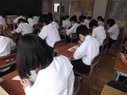 CDで流れるスピーチから、その内容やポイントを聞き取る学習です。聞き漏らさないよう集中しています。